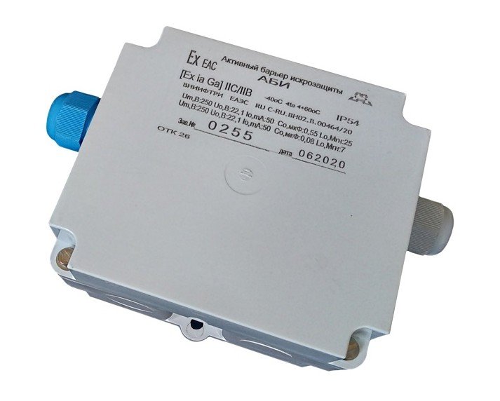 Активный барьер искрозащиты. Барьер искрозащиты [Ex ia Ga] IIB или [Ex ia Ga] IIC, одноканальный, активный, U-пит. 24 В, I-нагр. 100 мА, IP66, t-раб. -40...+60°C, габ.размеры (ВхШхГ) 121х188х68 мм. Предназначен для обеспечение искробезопасности в цепях питания исполнительных устройств (реле, оповещателей).