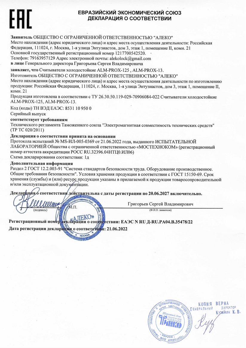 ● ALM-PROX-125-S - с фитингом из нержавеющей стали для металлорукава МРПИ-15, с клеммой заземления;● ALM-PROX-125-К – с кабелем для открытой прокладки;● ALM-PROX-125-М - с фитингом для металлорукава МРПИ-15, с клеммой заземления;● ALM-PROX-125-W – с кабелем для скрытой прокладки через стену.