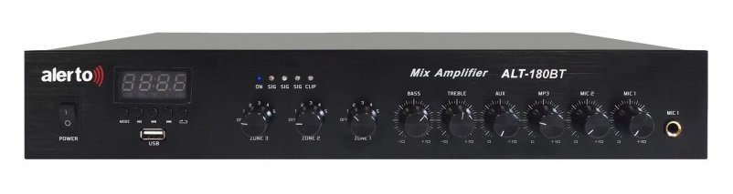 Микшер-усилитель. Трансляционный микшер-усилитель; 180Вт; 100В/4-16 Ом; 3 зоны трансляции с индивидуальной регулировкой громкости; USB(MP3)/Bluetooth/FM-тюнер; 1 микрофонный вход; 1 линейный вход. Питание: 220В.