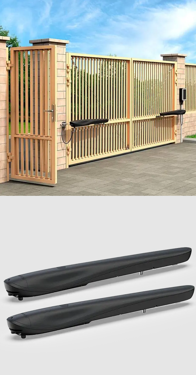 Наличие концевых выключателей и возможность подключения дворового освещения.Наличие электромеханических выключателей значительно продлевает срок службы привода за счёт его более мягкой остановки.При отключении электричества привод автоматически блокируется. Для доступа на территорию нужно будет воспользоваться ключом, который входит в комплект.
