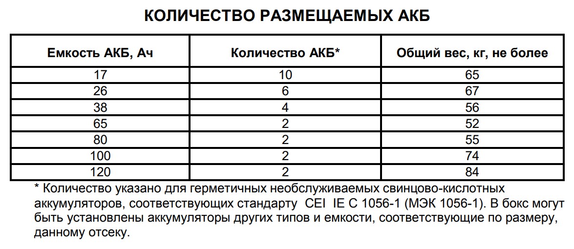Аккумуляторный отсек под АКБ 120 Ач. Аккумуляторный отсек, под два аккумулятора 12 В до 120 Ач, степень защиты оболочкой IP20, диапазон рабочих температур -10...+40°С, габаритные размеры 430х385х280 мм, 7,2 кг