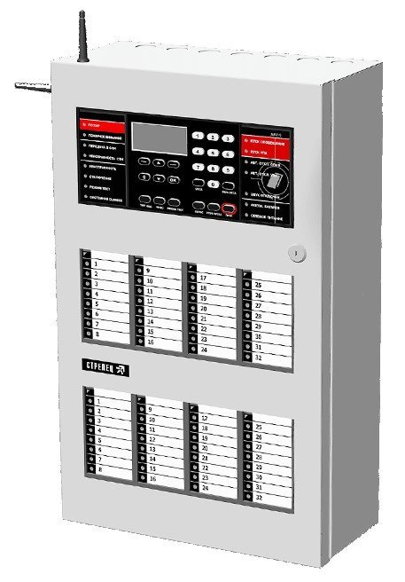 Прибор приемно-контрольный и управления пожарный. Прибор приемно-контрольный и управления пожарный для работы в системе "ПБСО"; ЖК-дисплей 128х96 точек с подсветкой, 64 индикатора зон контроля, клавиатура, передача сигналов о пожаре на пульт "Стрелец-Мониторинг" по IP и GSM каналу, облачный мониторинг технического состояния "Streletz-Cloud"; f-раб. 866-868 МГц, до 127 ретрансляторов, до 1920 дочерних устройств, дальность связи (открытое пространство): с РР до 2000 м/с ДУ до 1200 м; контроль 1 кольцевой линии длиной до 4 км для подключения до 240 адресно-аналоговых извещателей; 6 выходов напряжения 24 В/1 А с контролем целостности линии, 5 реле 250 В/5 А, 2 входа контроля внешних неисправности/блокировки; U-пит. ∼220 В, резервное питание 2х12 В, 7Ач (не входят в комплект поставки), встроенный источник питания =27 В/5 А; t-раб.-20…+55°C, габ.размеры 355х578х170 мм. Оснащен модулем межпанельного интерфейса с возможностью объединения до 30 панелей в кольцевой межпанельной линии связи общей длиной до 30 км