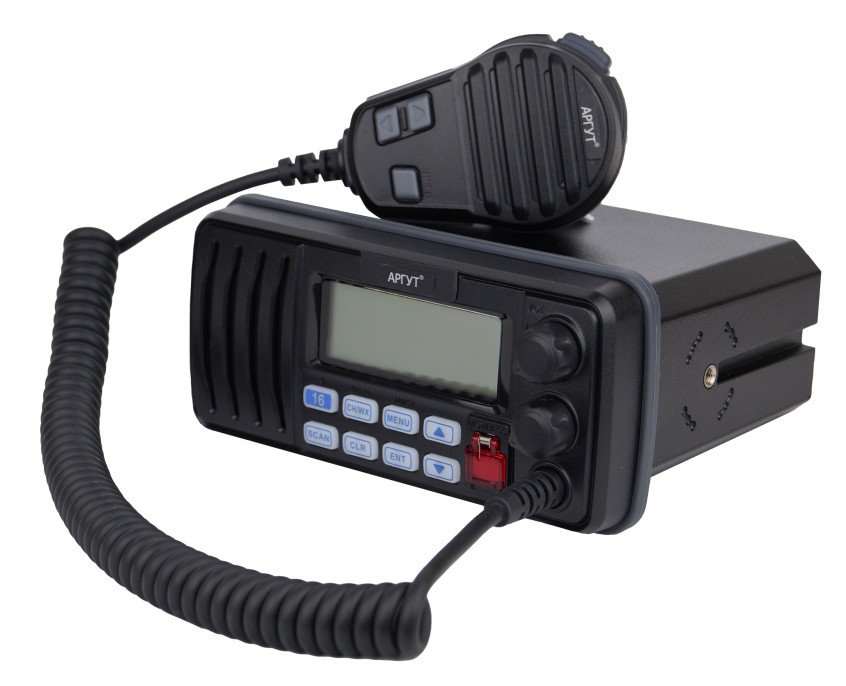 Бортовая морская радиостанция. Радиостанция бортовая морская, рабочий диапазон частот: передача 156,0125-158,0125 МГц, приём 161,65; 161,775:162,4; 162,425; 162,45;162,475; 162,5; 162,525; 162,55; 163,275; 1176,45; 1227,6; 1379,913; 1381,05; 1575,42 МГц, количество каналов 52, шаг сетки частот 25 кГц; питание 13,8 В; мощность передатчика до 25 Вт; t-раб. -20...+60˚С, габ.размеры 165х175х80 мм, вес 930 г, в комплекте GPS антенна