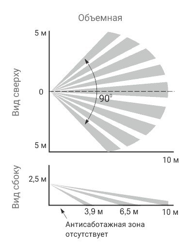 Извещатель охранный объемный оптико-электронный. ИК, объемный, зона обнаружения 10м х 90°, выбор чувствительности, U-пит. 8...15 В, I-потр.15 мА, IP41, t-раб.0...+50°С, 86×54×41 мм.