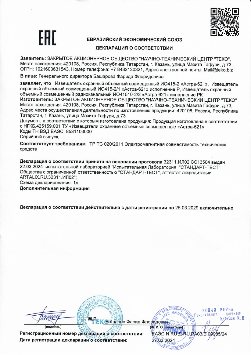 - 2 канала обнаружения: объемный оптико-электронный (ИК), поверхностный звуковой (АК);- установка на стене; - микропроцессорный анализ сигнала;- выбор частотной литеры контактом Lit;- прием команд от лазерного пульта Астра-942 для запуска регистрации в радиосети Астра-РИ-М;- контроль вскрытия корпуса;- контроль напряжения питания; - возможность установки с применением дополнительного шарикового кронштейна;- не требуется получения разрешений на применение от органов государственной радиочастотной службы.ИК:- отсутствие реакции на перемещение животных весом до 20 кг;- устойчивость к внешней засветке не менее 6500 лк.АК:- обнаружение разрушения обычных стекол, защищенных полимерной пленкой, армированного, узорчатого, многослойного строительного, закаленного плоского.