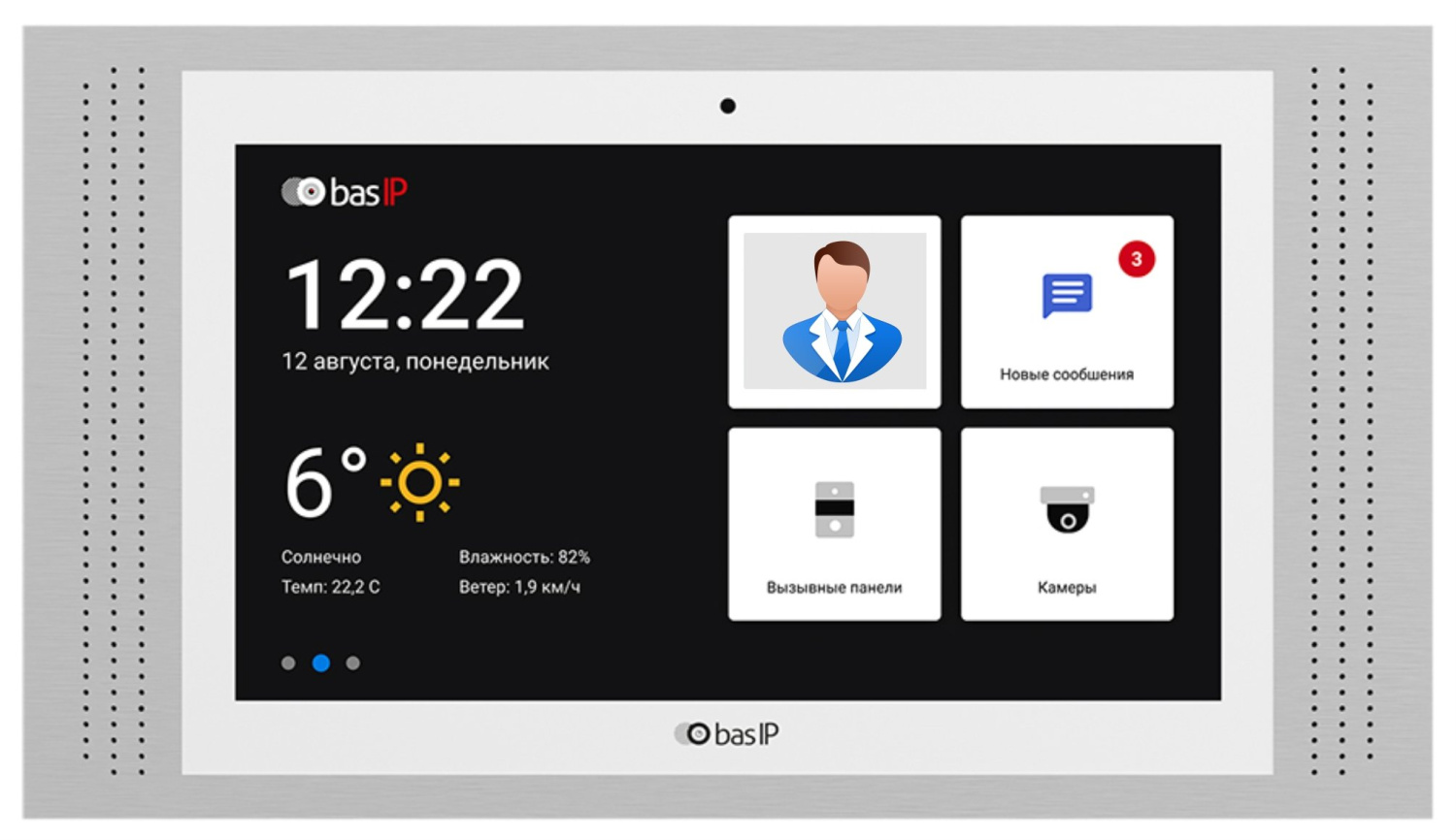 Монитор IP-видеодомофона цветной. Видеодомофон индивидуальный. Дисплей 10" IPS, сенсорный емкостный, разрешение 1280х800. Android 6.0. Встроенная камера. Внутренняя память (снимки гостей), слот для MicroSD карты (до 32 гб), подключение датчиков сигнализации, фоторамка, проигрыватель видеофайлов, умный дом. Подключение кнопки дверного звонка. Управляемый выход при поступлении входящего звонка, возможность установки сторонних приложений и приложений для "Умного дома", интеграция с АСКУЭ. Встроенный Web-браузер. Просмотр до 32 IP камер. Питание PoE 802.3af и +12 В (БП в комплект не входит). Поддержка: SIP P2P. Накладной монтаж, врезной монтаж с помощью кронштейна в комплекте. 316х185х29.5 мм. Корпус: алюминий, пластик. Цвет - белый.
