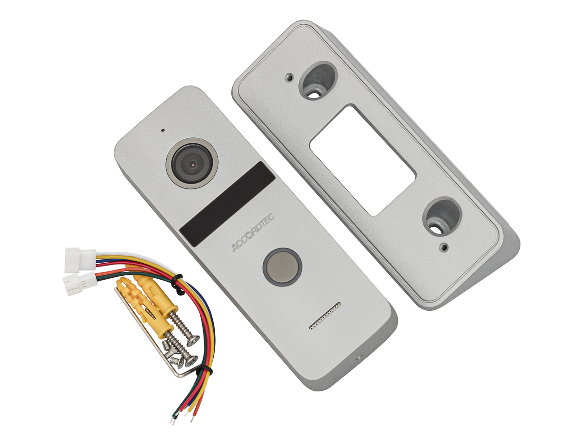 Вызывная панель цветная. 4-x проводная цветная вандалоустойчивая панель, встроенная видеокамера 800ТВЛ и инфракрасная подсветка. Широкий угол обзора 120 градусов. Накладная металлическая. В комплекте: кронштейн для поворота панели на 30°. Габариты: 133 х 48 х 16,5 мм. Цвет корпуса: черный , серебро
