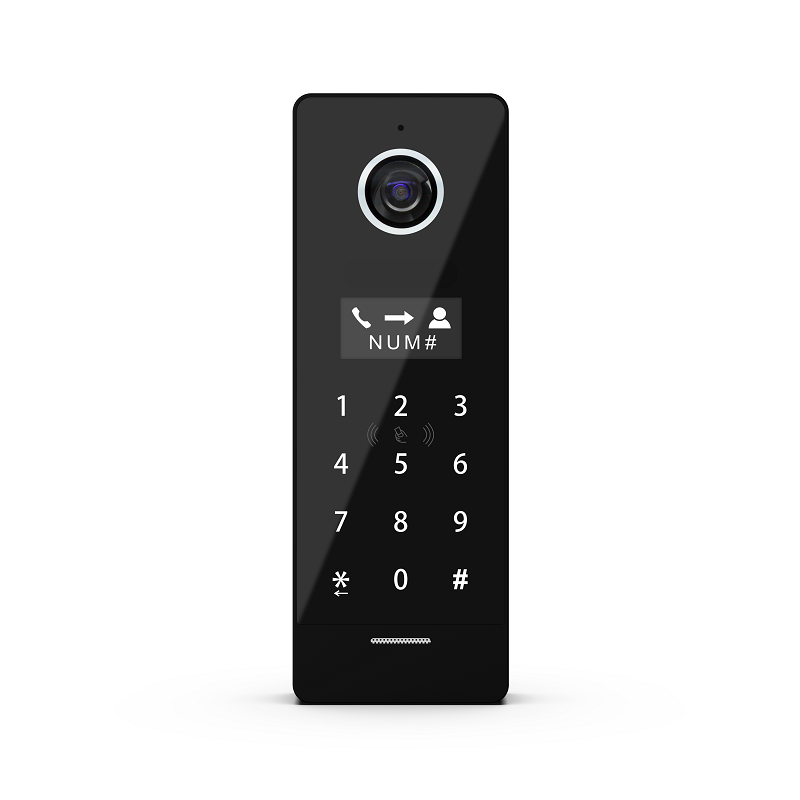 Вызывная панель IP-домофона. Вызывная кодонаборная панель IP 2 Мп на 20 абонентов с контроллером и считывателем Em marine(до 1000 карт). 99 паролей. Экран с диагональю 1,3 дюйма. Угол обзора: ширина 125°, высота 72°. Управление двумя реле (дверь(NO (до AC/30В DC 4A)) и ворота(NO/NC (до AC/30В DC 4A))). POE IEEE 802.3af/DC15В, 0.8A; IK07; IP66; -30°C...+60°C; 154х55х21 мм. Цвет корпуса: чёрный.