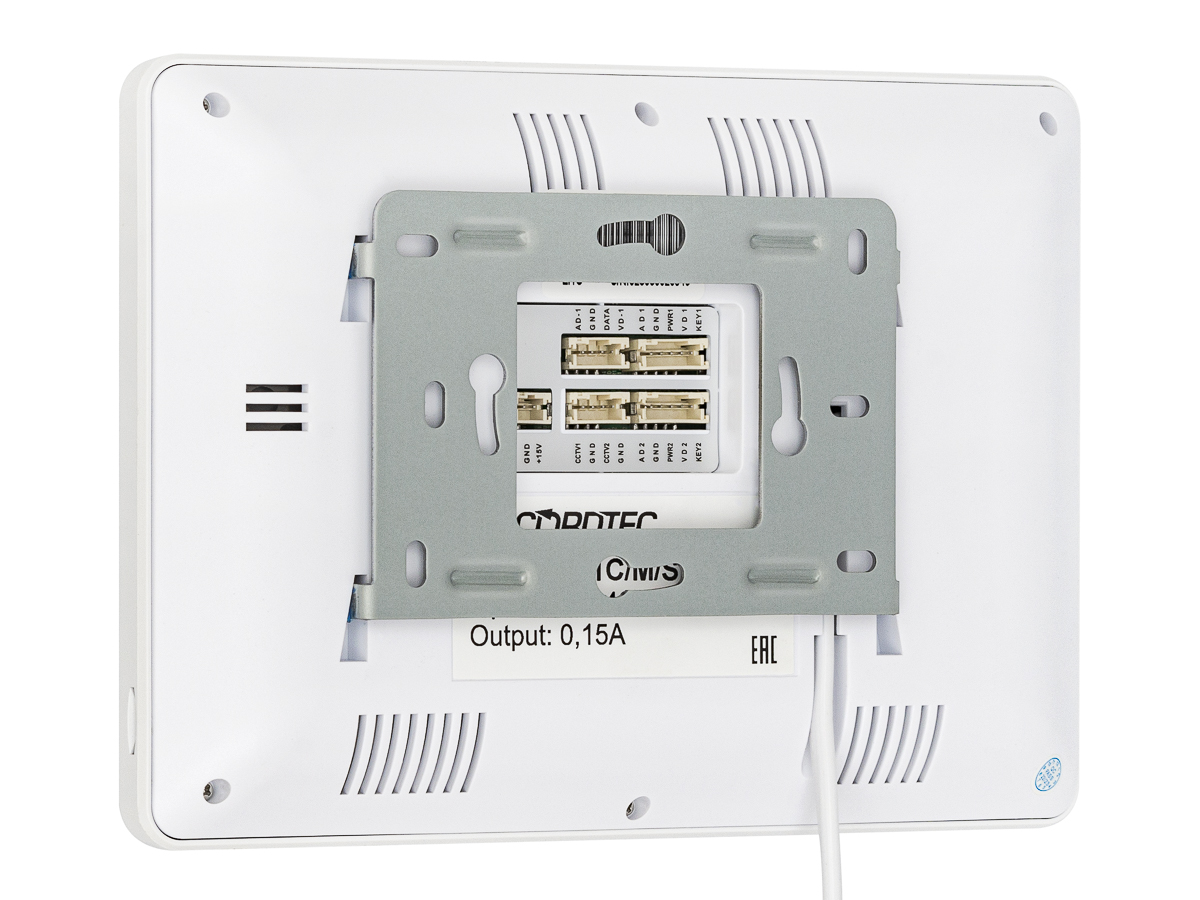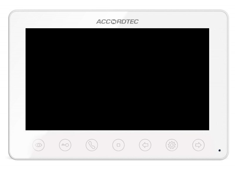 Монитор домофона цветной с функцией «свободные руки». Монитор видеодомофона, 7" LCD TFT (800х480), CVBS. Подключение 2-х вызывных панелей и 2-х видеокамер. Загрузка собственных мелодий MP3. Запись видеороликов входящего вызова со звуком на micro SD карту или во встроенную память (64 кадра) в автоматическом или ручном режимах, и по детектору движения. Поддержка micro SD карт (8Гб-32Гб). Функция "интерком". Накладной тип крепления, цвет корпуса белый. AC220V, 188х135х22 мм.