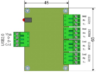 Промышленный преобразователь USB в RS-232. Промышленный преобразователь USB в RS-232; 4 порта, составные винтовые разъемы; поддерживает USB 2.0 480Mb/s, 4хRS232 460 kbps; питание от шины USB; t-раб.-40...+85°С, 65x45x10 мм