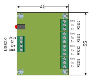 Промышленный преобразователь USB в RS-232. Промышленный преобразователь USB в RS-232; 4 порта винтовые разъемы; поддерживает USB 2.0 480Mb/s, 4хRS232 460 kbps; питание от шины USB; t-раб.-40...+85°С, 55x45x10 мм