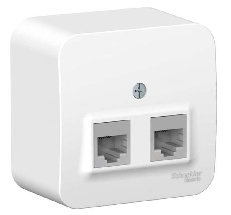 Розетка компьютерная с изолированной пластиной. Розетка компьютерная RJ45 открытой установки с изолированной пластиной, серия BLANCA, двойная, кат. 5Е, IP20, цвет белый, ШхВхГ 65х65х41 мм