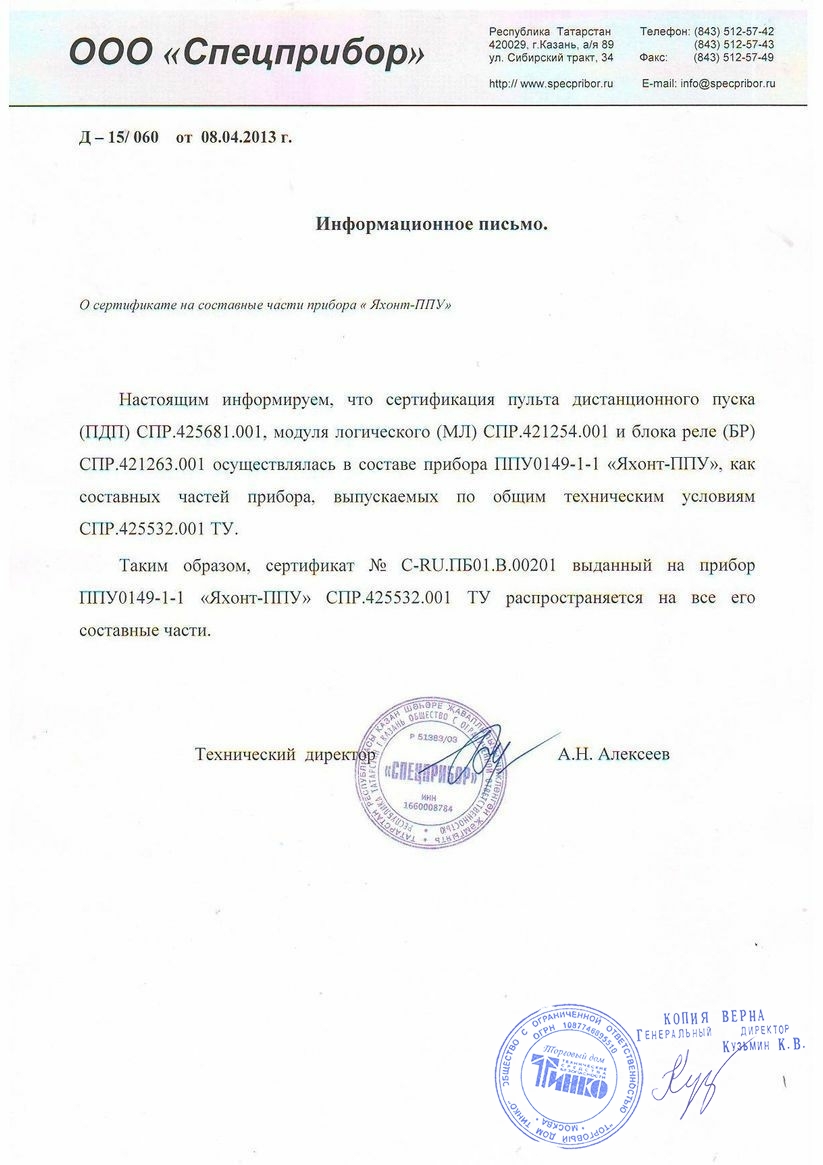 Предназначен для управления исполнительными устройствами модулей пожаротушения, которые требуют более мощный управляющий сигнал, чем могут обеспечить выходы XT7 «Пиропатрон» прибора «Яхонт-ППУ».Блок реле имеет вход для приема сигнала управления с выхода XT7 «Пиропатрон» прибора «Яхонт-ППУ» и три одновременно переключаемых группы выходных контактов на переключение типа «сухой контакт».На каждый выход ХТ7 «Пиропатрон» прибора «Яхонт-ППУ» параллельно можно подключить до двух блоков реле.