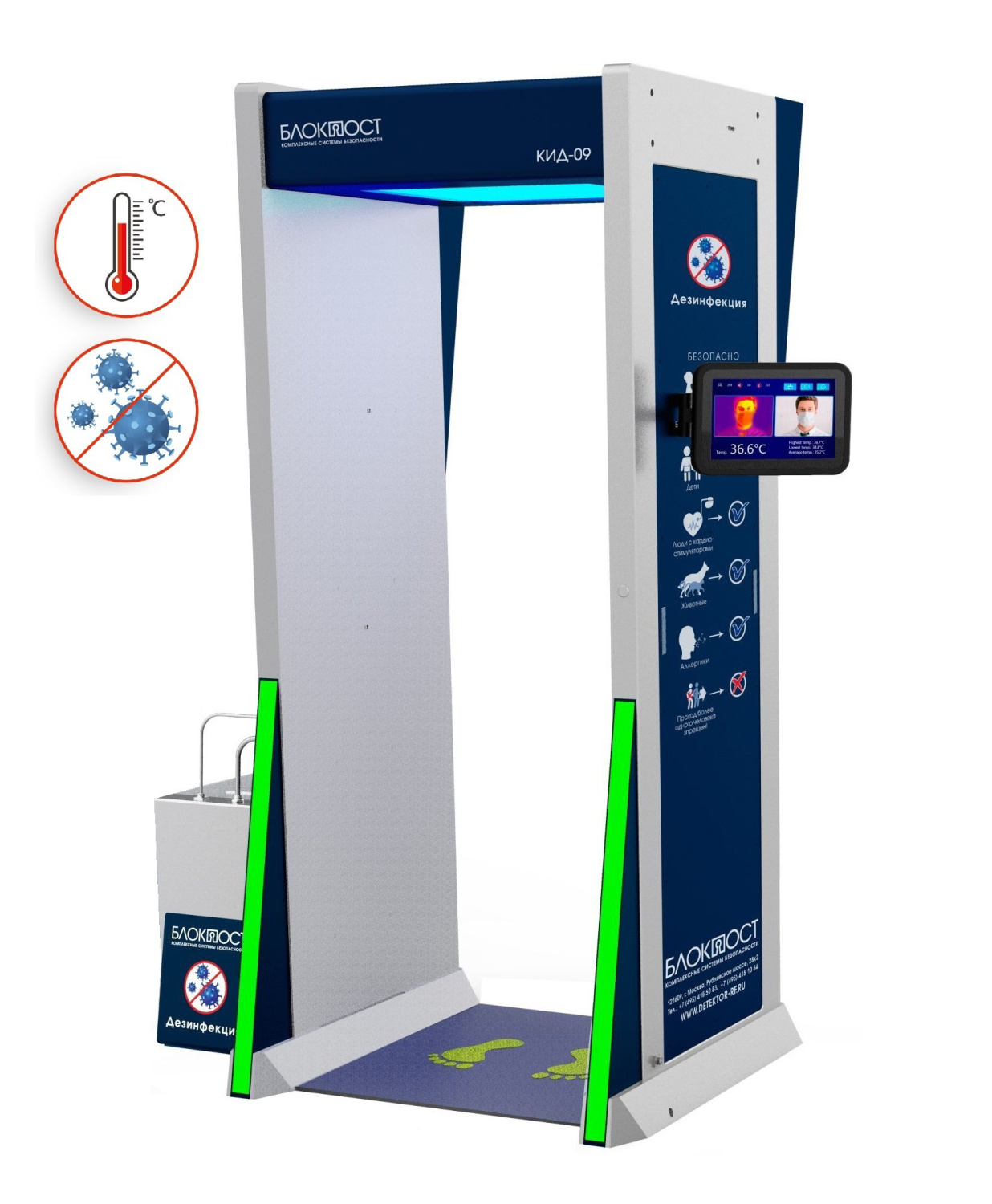 Ширина прохода – 790 мм; пропускная способность – 15 чел/мин (без дезинфекции – 60 чел/мин); звуковая и световая индикации; счётчик тревог; ЖК-дисплей; параллельная эксплуатация устройств на расстоянии от 50см; подключение к ПК; ПО для сбора/аналитики/хранения в памяти базы данных до 50 000 снимков. AC 220В; 35...200Вт. –10°С...+50°С. Габ.размеры: 1000х1000х2200мм.
