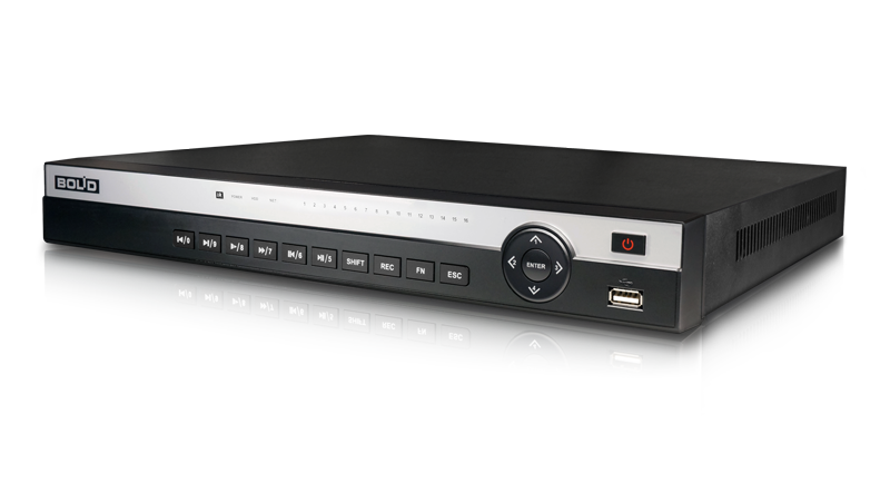 IP-видеорегистратор 16-канальный. IP Видеорегистратор до 16х каналов; 256 Мбит/с; разрешение записи до 16 Мп; H.264/Н.265/MJPEG; 1 HDMI (3840×2160), 1 VGA; 2 SATA порта до 16Тб; 2 USB2.0; Аудио вход/выход 1/1; Тревожный вх/вых - 4/2; 1U; DC12В/4A; -10°C…+55°C; 375×284×53 мм.