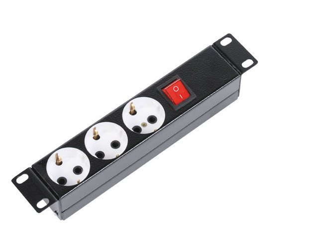 Блок розеток 10". Блок силовых розеток для шкафа 10",без шнура с выключателем, 3 EURO розетки, 10А.