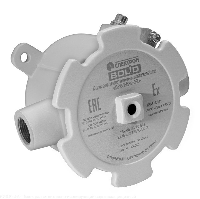 Блок разветвительно-изолирующий взрывозащищенный. Блок разветвительно-изолирующий взрывозащищённый (1Exdb IIC T6 Ga/Ex tb IIIC T85°C Db) для изолирования короткозамкнутых участков ДПЛС с последующим автоматическим восстановлением после устранения короткого замыкания; питание по ДПЛС, I-деж. ≤200 мкА, I-сраб. 6 мА; климатическое исполнение ОМ1, IP68, t-раб. -40...+65°C, габ.размеры 140х77 мм, вес ≤1 кг, корпус из алюминиевого сплава