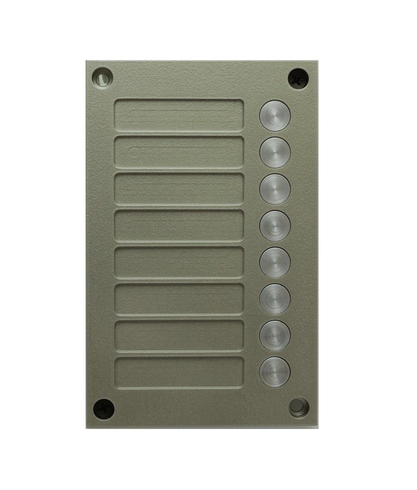 Кнопочная панель. Кнопочная панель используется в комплекте с блоком вызова БВД-424FCB-1 Количество кнопок для вызова абонентов-8. Рекомендуется использовать совместно с монтажным комплектом МК-424-1 МК-424-2.