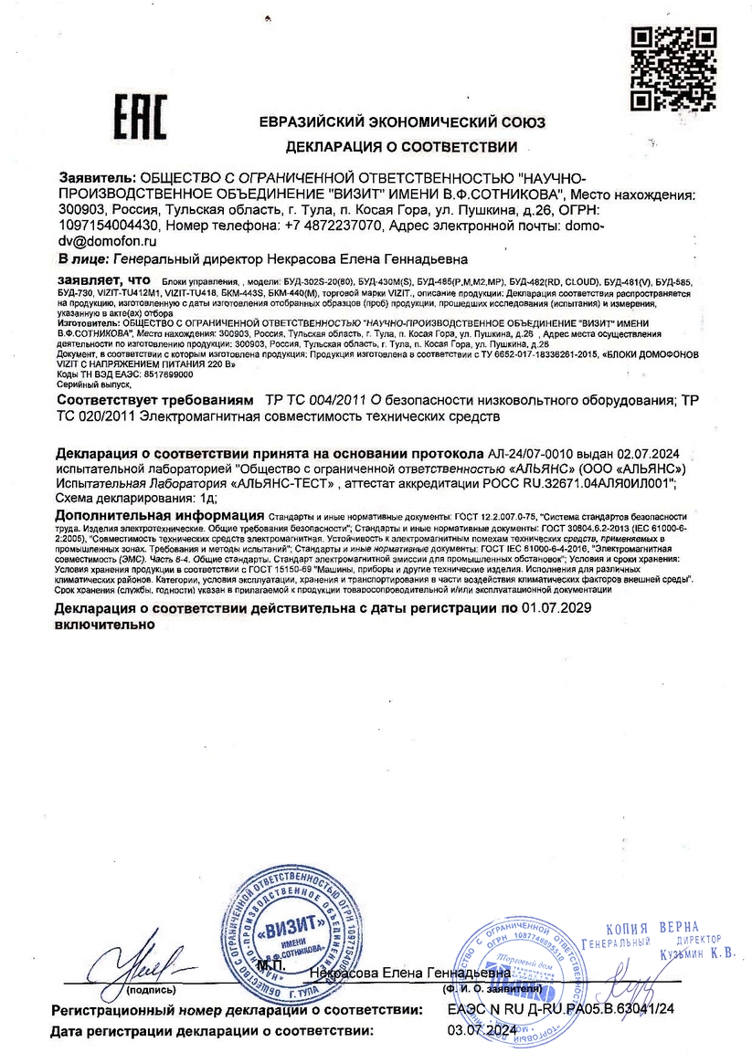 Блок управления БУД-730 используется совместно с блоками вызова серии 700 (БВД-733х, БВД-740х) в составе многоквартирных домофонов и видеодомофонов VIZIT серии 700 и обеспечивает, совместно с модулем VEM-701, подключение к сети Интернет, выполнение функций мобильного УКП на смартфонах абонентов, удаленное управление настройками домофона, а так же традиционные функции домофона VIZIT - двухстороннюю связь между посетителем и абонентом и открывание замка двери подъезда. Максимальное количество абонентов при использовании блока коммутации БК-400 - 400