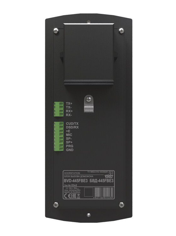 Блок вызова домофона. Блок вызова для совместной работы с БУД-430х, -485х. Встроенный считыватель ключей VIZIT-RF3 (поддержка RF7.1) RFID 13.56 МГц. Светодиодный дисплей. Встроенная IP-камера 4 Мп с подключением к Ethernet, ИК подсветка до 10 метров, угол обзора 90°. Лицевая панель из нержавеющей стали. Врезной монтаж. -30°C...+45°C; 96х230х46 мм. Рекомендуется использовать совместно с монтажными комплектами МК-445, MKF-445.