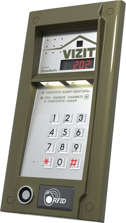 Блок вызова видеодомофона. Блок вызова до 200 абонентов. Врезной монтаж. Встроенная телекамера (CVBS, 700ТВЛ), объектив PINHOLE 90°), функция "День-ночь", ИК подсветка для телекамеры. Функции кодового замка, контроллера ключей TOUCH MEMORY и RF (200 индивидуальных кодов, 1200 ключей VIZIT-TM и/или VIZIT-RF2). Параллельная работа до двух БВД. Модуль памяти DS1996L-F5 В КОМПЛЕКТ НЕ ВХОДИТ!