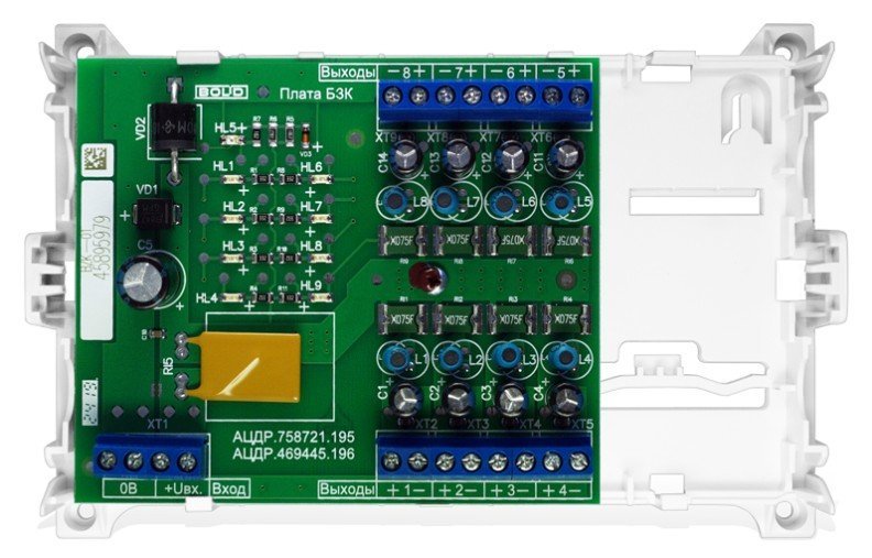 Блок защиты коммутационный. Блок защитный коммутационный на 8 выходов Входное напряжение 10-30 В. Ток по каждому каналу - до 1,0 А, от минус 30 до +50°С