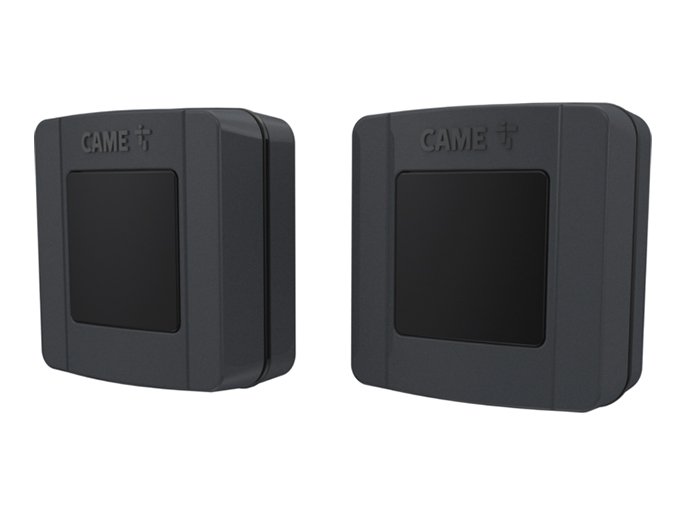 Фотоэлементы — это устройство безопасности, состоящее из инфракрасного передатчика и приемника, которые устанавливаются в проем ворот. В случае пересечения инфракрасного луча в блок управления поступает сигнал о появлении препятствия в опасной зоне действия автоматической системы, и система вырабатывает реакцию, соответствующую установленной логике работы — остановка или реверс полотна ворот или автоматики.