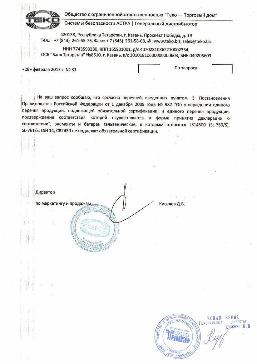 Элемент питания для извещателей Астра. Элемент питания CR2430, 3 В, 280 мАч. Применяется в извещателях Астра-4511, Астра-3221, Астра-3321 (в корпусе Астра-612, выпускался до 2008 года); в брелоках РПДК Астра-РИ-М, РПД Астра-Р, РПД Астра-РУ, Астра-Z-3245; в лазерных тестерах Астра-941 и Астра-942.