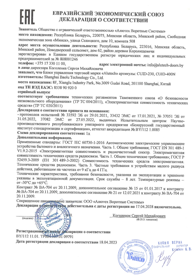 Блок CUID-400N предназначен для управления компонентами приводной системы промышленных секционных ворот. Непосредственное применение - для управления работой приводов ASI100, TR-5024-400/TR-10024-400/TR-13018-400