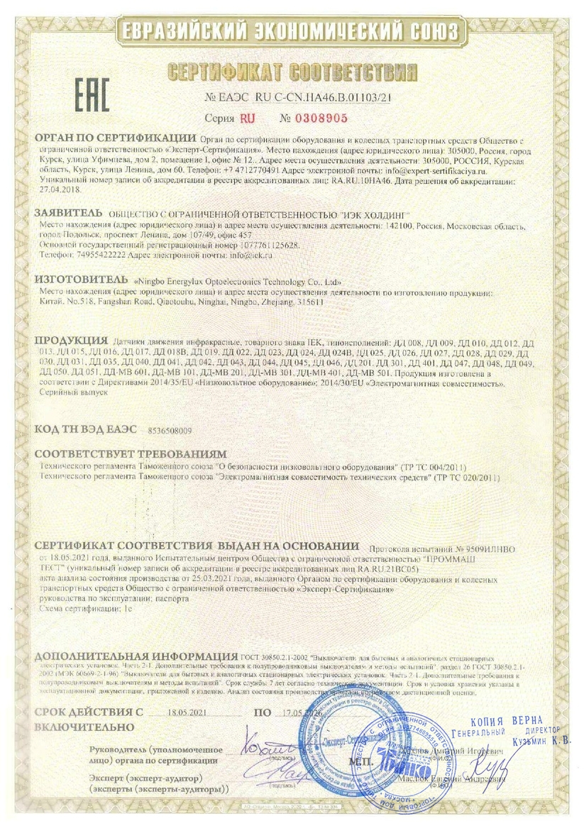 - корпус датчика выполнен из не поддерживающего горения пластика (поликарбонат);- в качестве коммутирующего нагрузку элемента использовано электромеханическое реле.