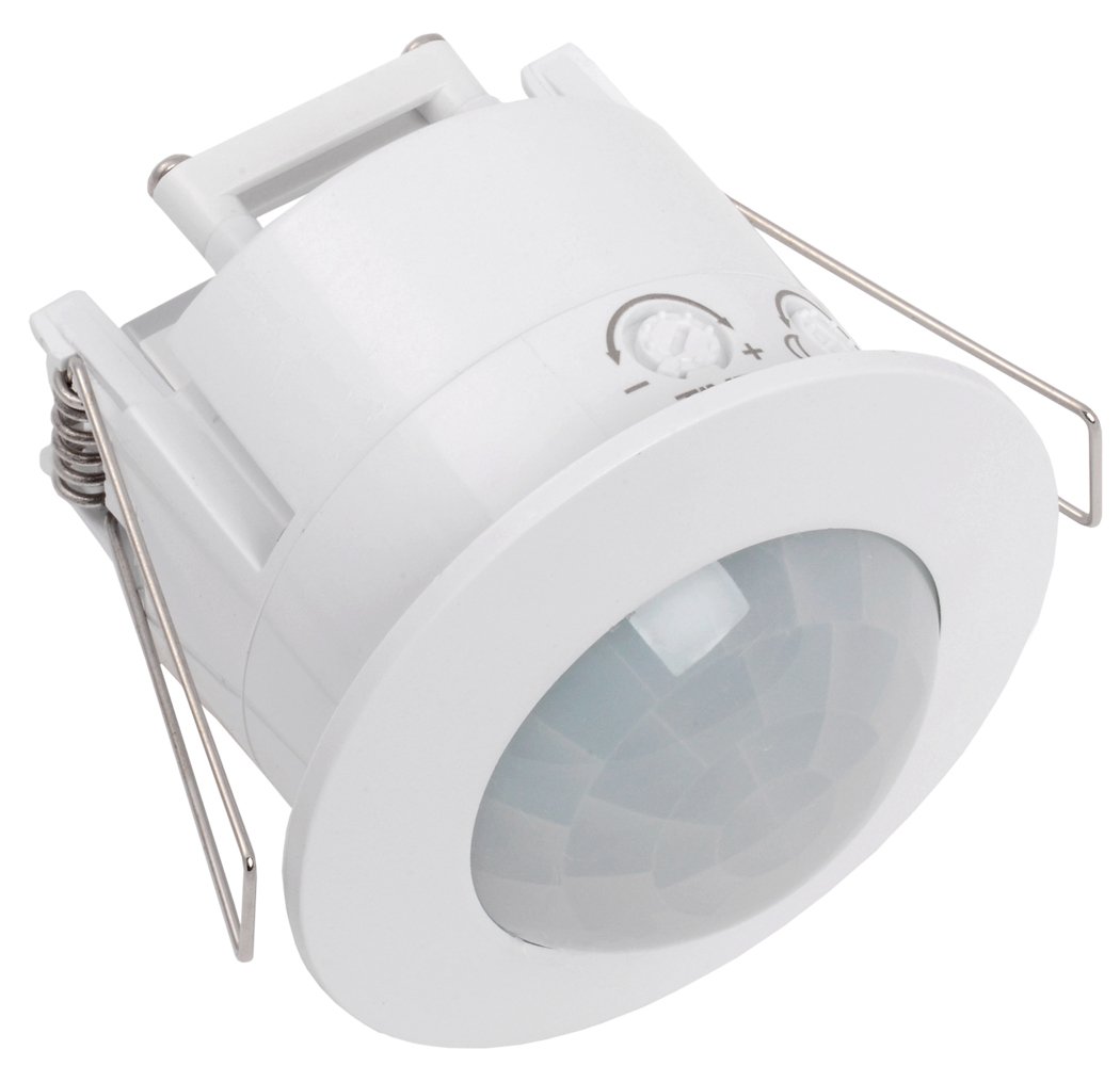 Датчик движения скрытого монтажа. Датчик движения для управления нагрузкой; врезной, потолочный; Ø зоны 12 м; угол обзора 360°; P-нагр.1200 Вт; IP20; 76х76 мм