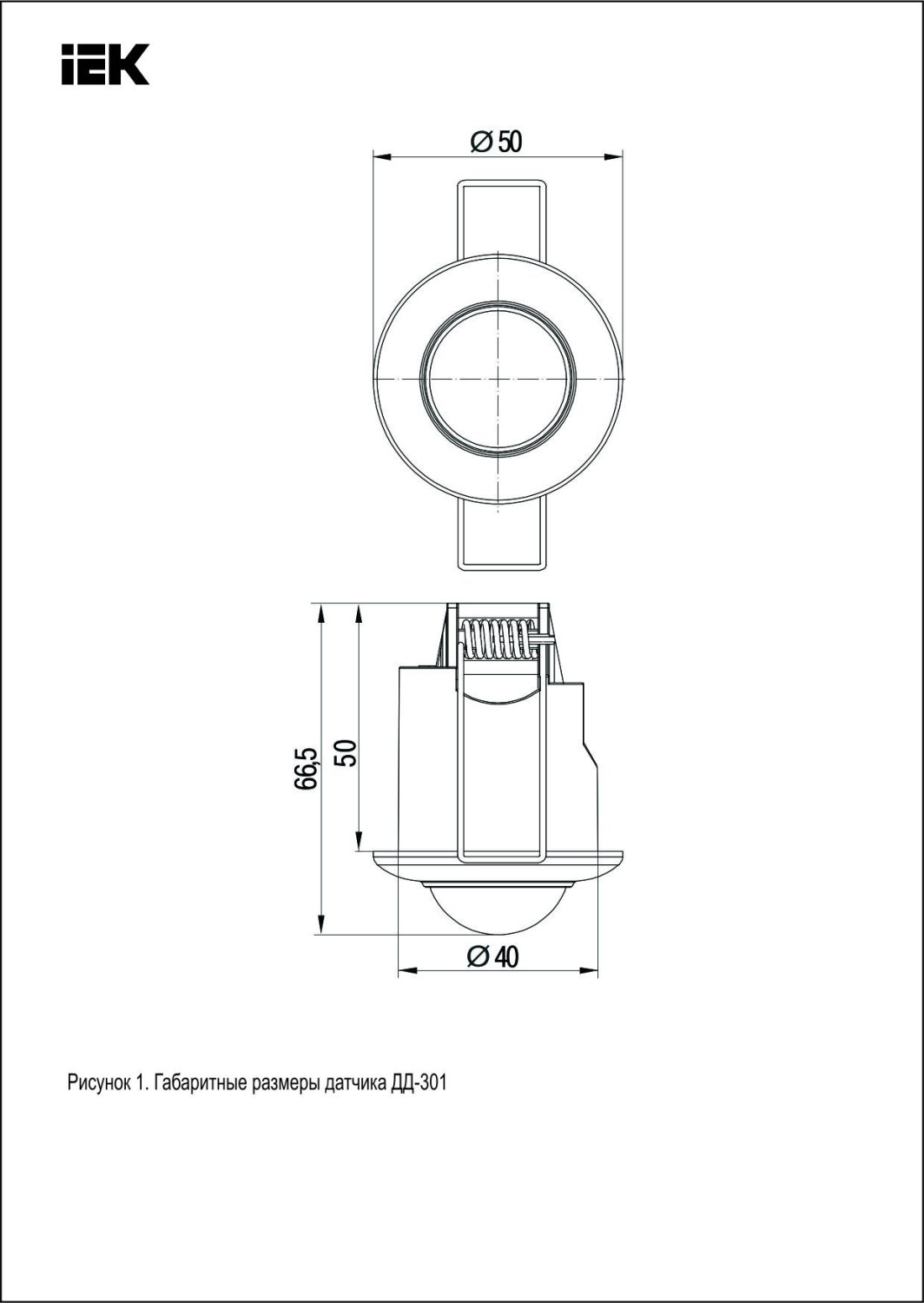 Датчик движения скрытого монтажа. Датчик движения для управления нагрузкой; врезной, потолочный; Ø зоны 12 м; угол обзора 360°; P-нагр.800 Вт; IP20; 60х66,5 мм