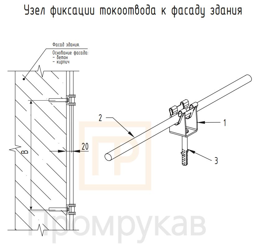 Держатель токоотвода металлический 35мм TDZ Промрукав предназначен для фиксации токоотвода d8 мм на фасаде здания. Монтаж токоотвода осуществляется путем его защелкивания.