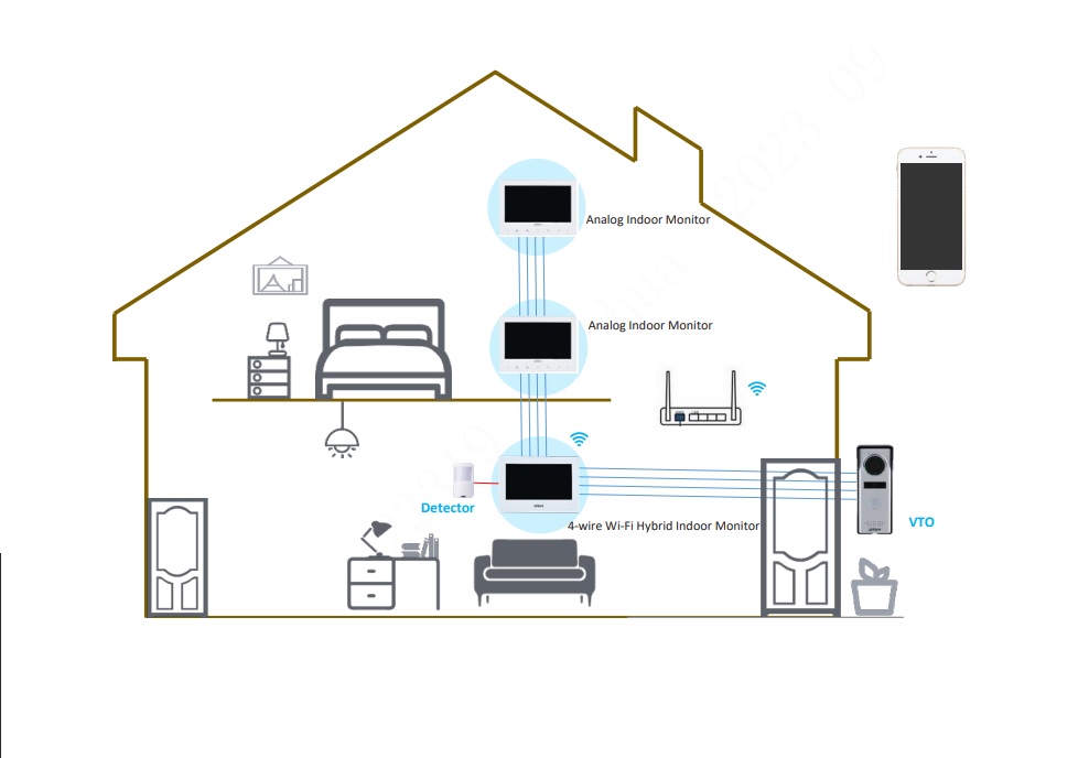DHI-VTH2624GW-WP: Монитор видеодомофона, сенсорный, WiFi, 7" TFT 4-проводный, разрешение 1024х600, DC 12В, 1 A, PoE, -10...+55°C, 190х135х26 мм.