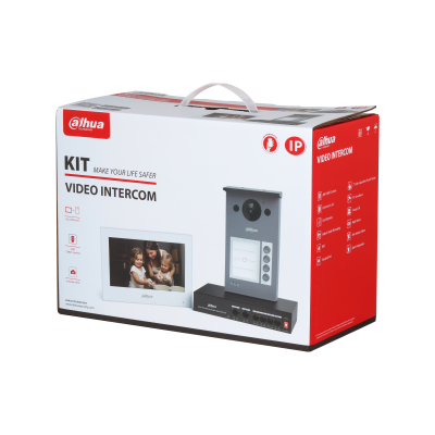 Комплект видеодомофона. Комплект: DHI-VTO3311Q-WP: IP вызывная панель; DHI-VTH2621GW-WP: IP 7" монитор; DH-PFS3006-4ET-36: 4-портовый неуправляемый коммутатор с РоЕ.