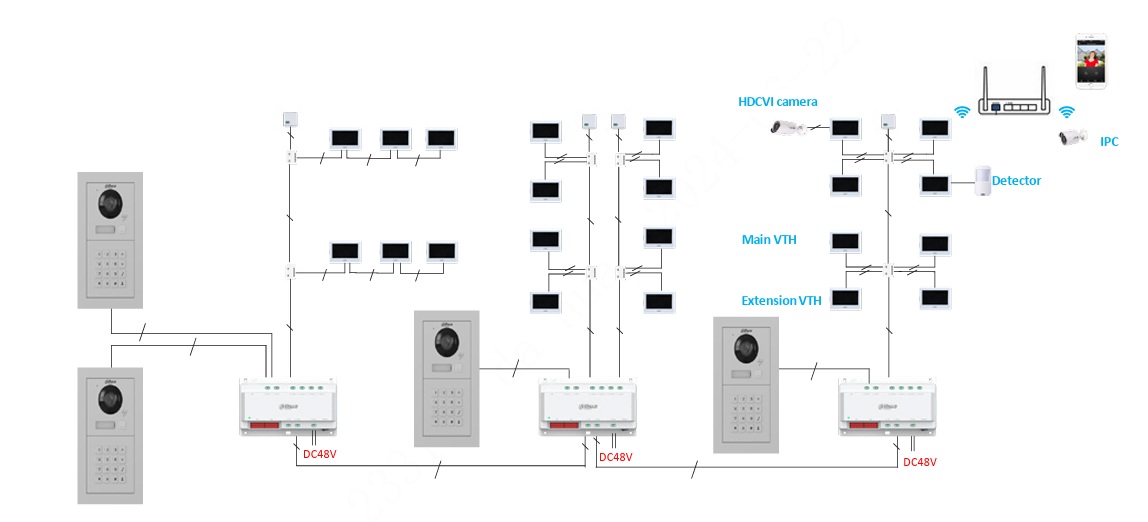 Комплект видеодомофона, 2-проводной. Комплект: DHI-VTO4103F-1 и VTNC2113C, Блок питания.