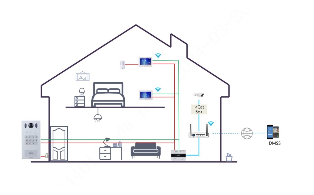 - всего может быть до 6 устройств в системе: вызывная панель и 5 мониторов (1 главный и 4 дополнительных);- при использовании двухроводной системы, питание через 2-проводной контроллер DHI-VTNS1001B-2/VTNS2003B-2.