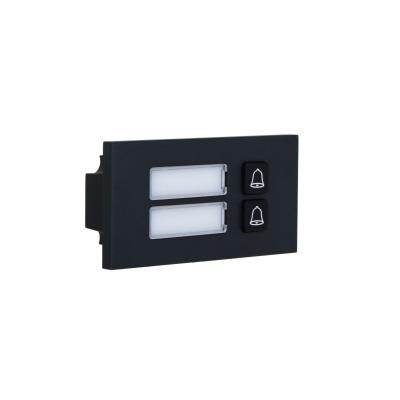 Модуль на 2 абонента. Вызывной модуль с 2-мя кнопками. Материал: металл. Питание DC 5В; -30°C...+60°C; 100х50х30.5 мм. Цвет черный.