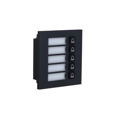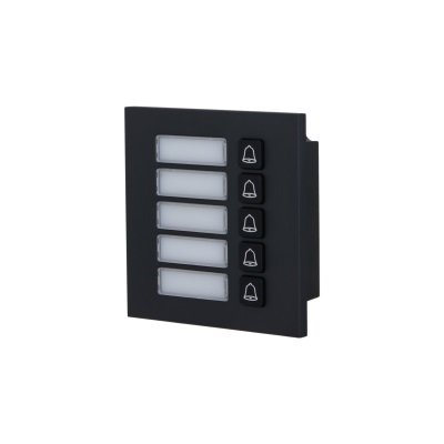 Модуль на 5 абонентов. Вызывной модуль с 5-ю кнопками. Материал: металл. Питание DC 5В; -30°C...+60°C; 100х100х30.5 мм. Цвет черный.