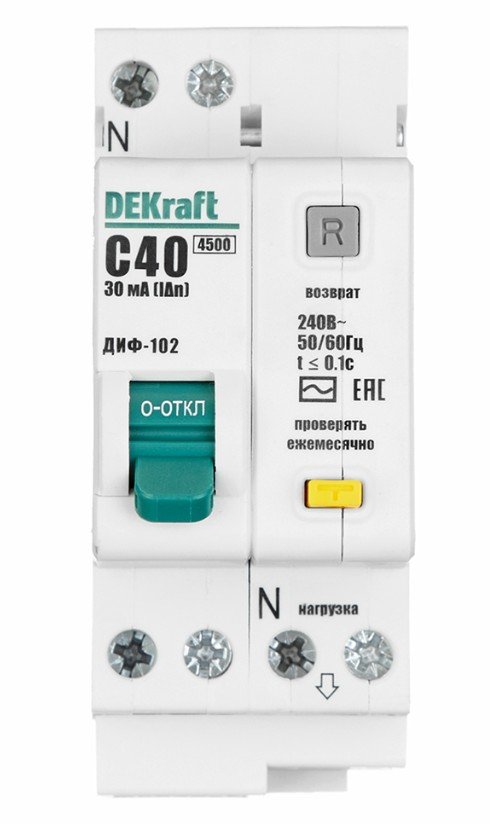 ДИФ-102 1Р+N 40А 30мА AC 4,5кА (16007DEK)
