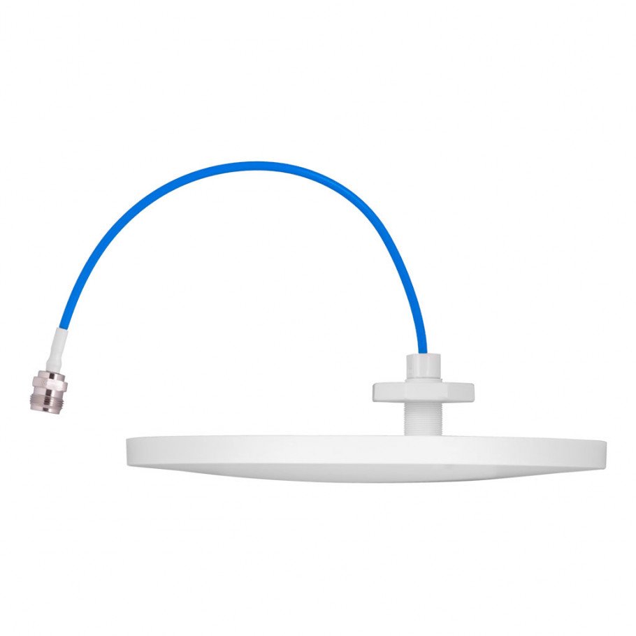 Антенна потолочная. Широкополосная внутренняя потолочная круговая антенна, универсальна для монтажа с любыми усилителями сотовой связи, диапазон частот 698-960…1710-2700 МГц, коэффициент усиления до 3.5-6 дБ, стандарт сотовой связи 2G GSM900, 2G GSM1800, 3G UMTS900, 3G UMTS2100, 4G LTE800, 4G LTE1800, 4G LTE2100, 4G LTE2600, Wi-Fi, разъем антенны N-типа (розетка), волновое сопротивление 50 Ом, -40...+60°C, 220х20 мм.