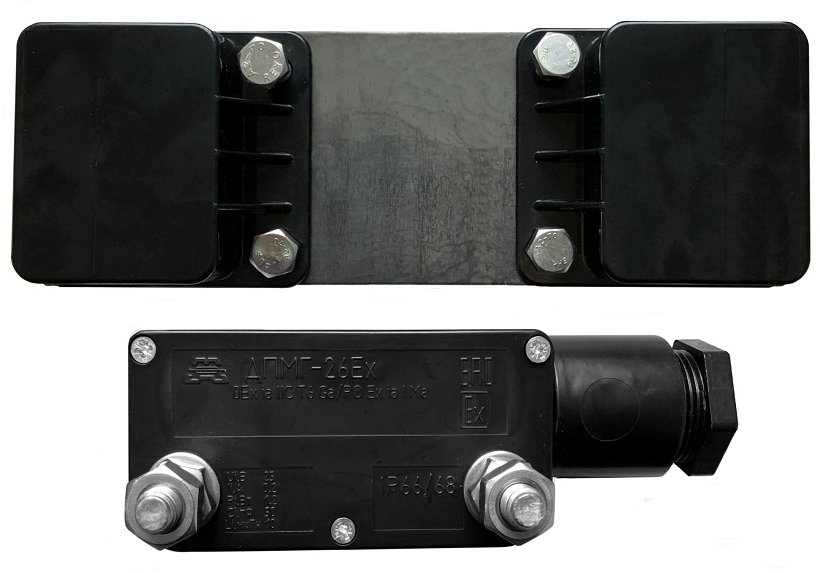 Датчик положения магнитогерконовый взрывозащищённый. Датчик положения магнитогерконовый взрывозащищенный; 0ExiaIICT6Ga/POExiaIMa; расстояние между блоками: 200 мм (контакты замкнуты), 260 мм (контакты разомкнуты); IP66, t-раб.-50...+50°C, блок геркона 150х70х38 мм, блок магнитов 287х100х41.5 мм