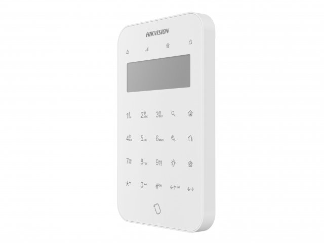 Беспроводная сенсорная клавиатура. Клавиатура с LCD-экраном и двусторонней беспроводной связью (AXPRO); f-раб.868 МГц, технология Tri-X, дальность связи до 1200 м; четыре элемента питания CR123A; t-раб. -10...+55°С, 174.63×109.62×25.25 мм. Белого цвета.