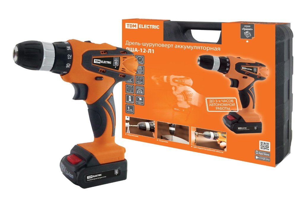 ДША-12-Л1 12В, 1,3А*ч Li-Ion, 22Нм, 0-1350 об/мин, кейс "Гранит" TDM (SQ1030-0201)