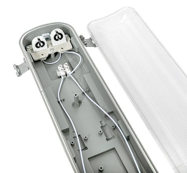 Светильник пылевлагозащищенный под LED лампу. Светильник пылевлагозащищенный под LED лампу 1хT8; P-max.18 Вт, U-ном.230 В; IP65, t-раб.-25…+40°C, 64х62х1300 мм. Цвет белый.