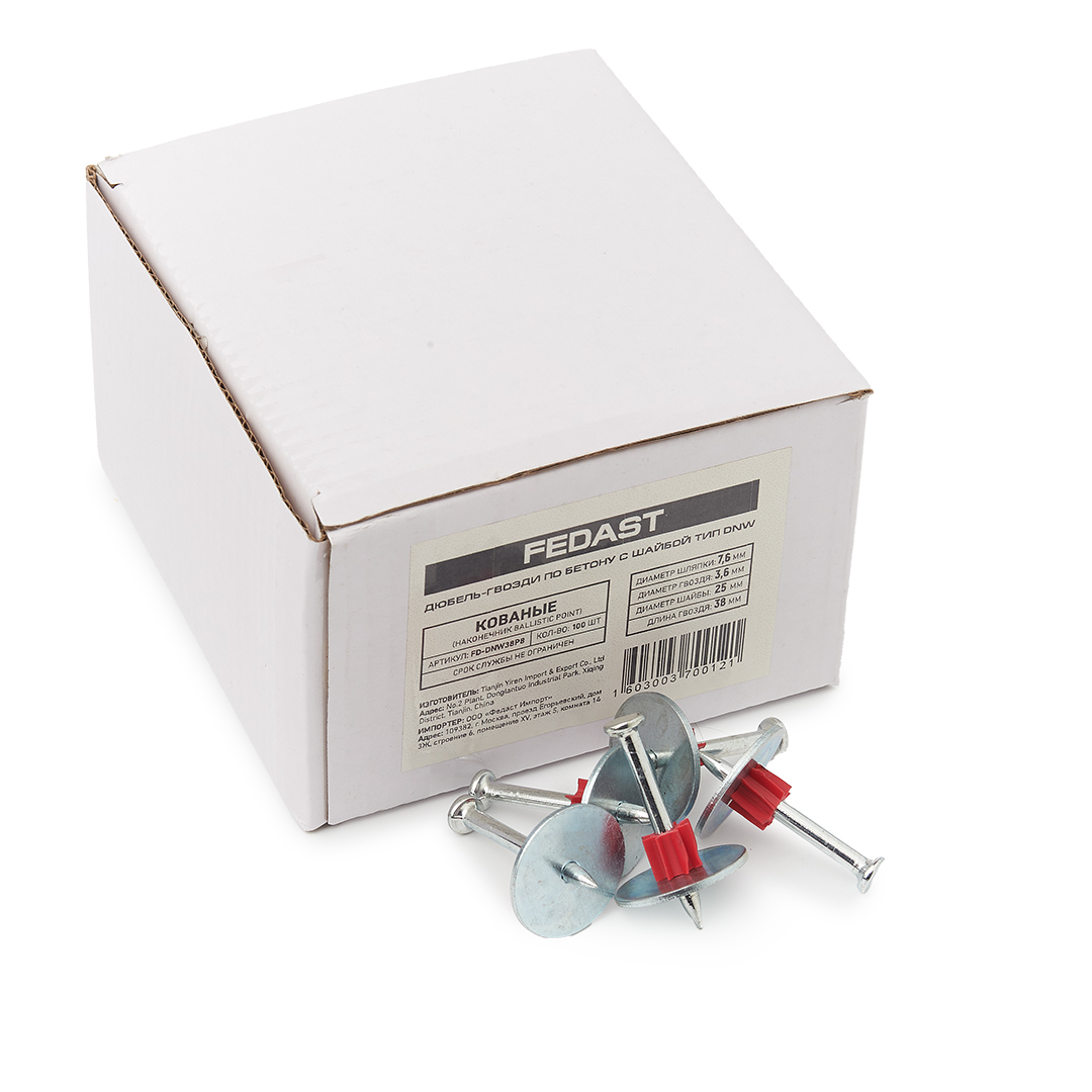 Дюбель гвозди по бетону с шайбой DNW (38 мм, 100 шт) FEDAST (FD-DNW38P8)