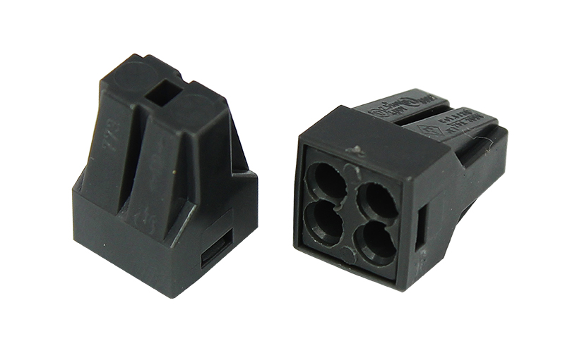 Клеммник для провода. Безвинтовая клемма 4-х проводная с токопроводящей пастой для соединения одножильных и многожильных проводов, сечением от 1,0 до 2,5 мм². Рабочее напряжение 250 В, ток 24 А. Рабочая температура: –45...+80 ºC