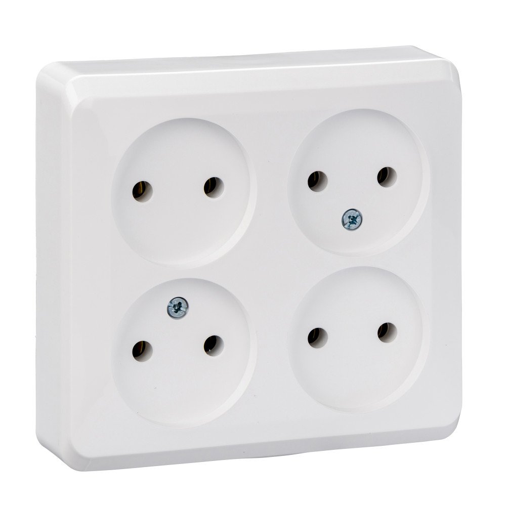 Этюд розетка 4-местная без заземления без шторок, открытой установки, белая (PA16-205B)
