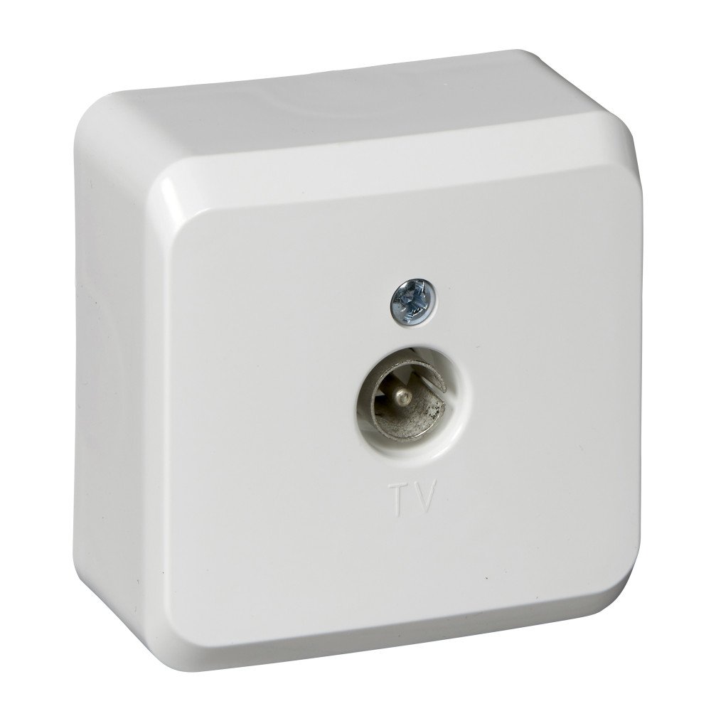 Розетка телевизионная TV. Розетка телевизионная TV 1-местная открытой установки, серия Этюд, f-раб.5...862 мГц; 0,7dB; IP20, ШхВхГ 61х61х44 мм