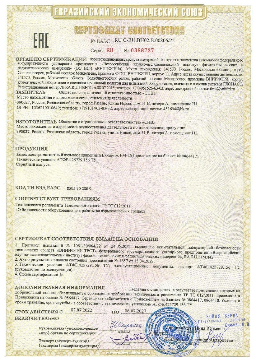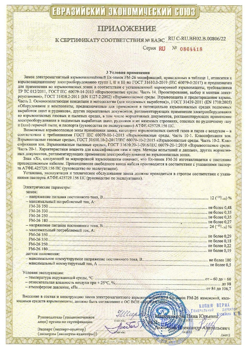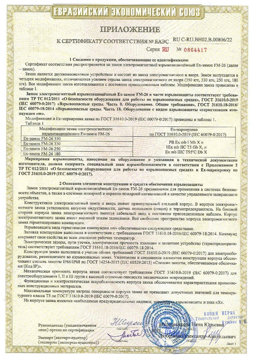 Ех-замок FM-26 с маркировкой взрывозащиты РВ Ex mb I Mb X и 1Ex mb IIC T5 Gb X и Ex mb IIIC T95°C Db X по ГОСТ 31610.0-2019 (IEC 60079-0:2017).